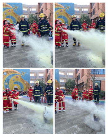 为了让大家真实地感受到着火的场景,幼儿园邀请消防员叔叔们带来了火灾现场的模拟,让小朋友们都知道了如何才能保护好自己,加强安全意识。消防员叔叔为全园师生介绍了灭火器的使用方法使用角度、使用站位等注意事项,部分教师和小朋友进行了现场操作